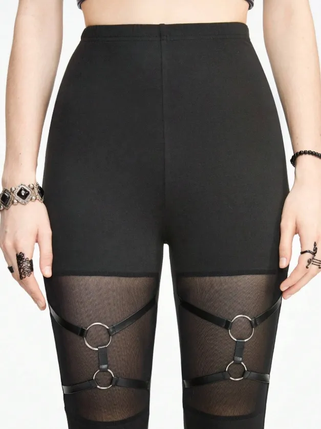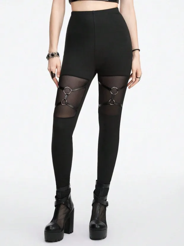 Com recortes em tule, tiras e argolas metálicas, essa calça une sensualidade e atitude em um visual forte e cheio de personalidade.