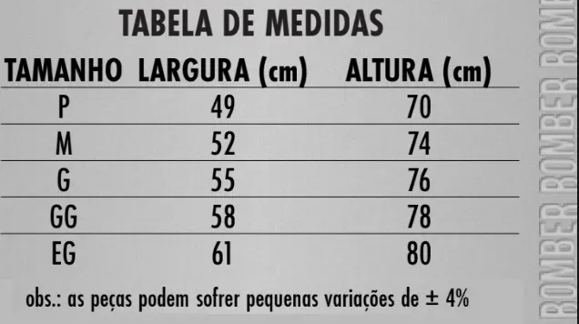 As combinações acima não possuem estoque.