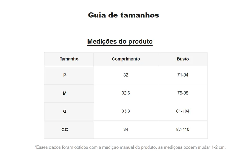 As combinações acima não possuem estoque.