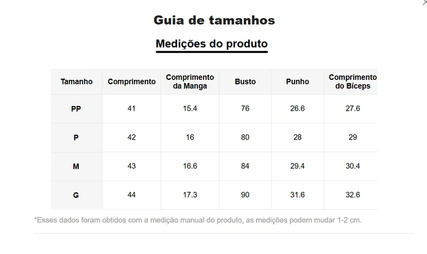 As combinações acima não possuem estoque.
